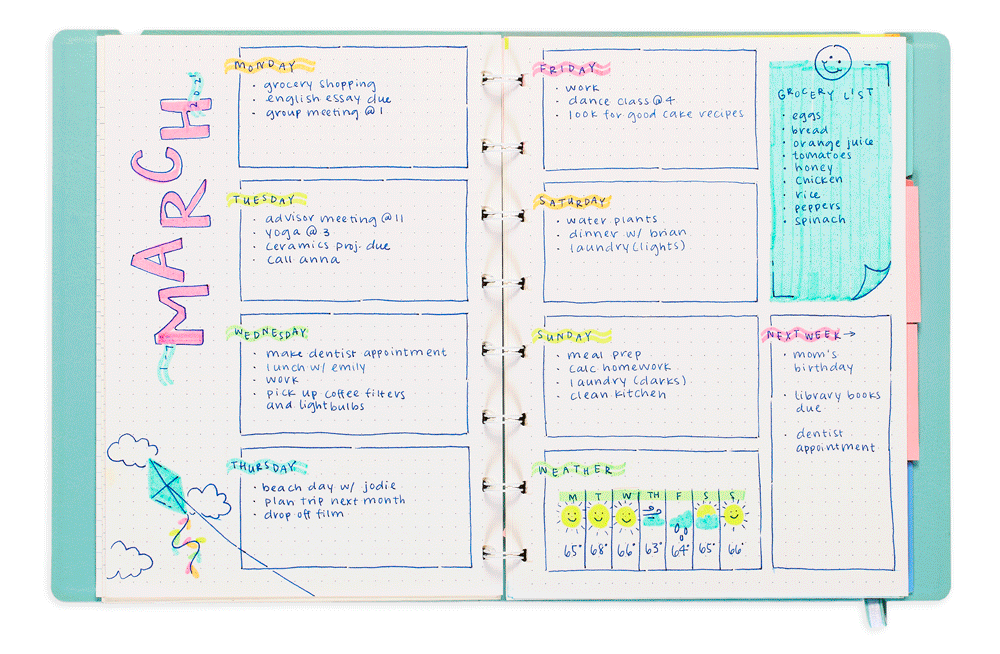 I helped design and construct props and example art (like the Halloween bags, fireplace, and planner spreads below) for photoshoots.